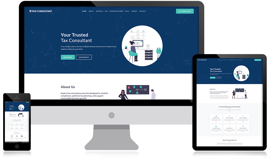This professionally developed Tax Consulting website template 6 has been made for Financial advisors and tax consultant firms, and accounting professionals who desire to build a strong, credible, and ICAI-compliant online presence. The layout delivers modern aesthetics with professional simplicity, assuring the website shows trust, accuracy, and expertise main values of the accounting profession.